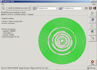 No entanto, muitas vezes os erros ocorrem em DVDs para os quais nós não criamos um ficheiro ECC de correcção de erros. Neste modo, as probabilidades de recuperação são mais diminutas, mas o DVDisaster irá copiar as partes boas do DVD, e de seguida irá tentar fazer a leitura dos sectores danificados, usando múltiplas passagens.