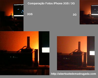 Numa situação de baixa luminosidade o resultado do 3GS é algo estranho. Por um lado apresenta menos "ruído" que o 3G, mas por outro lado parece ter menos resolução, como se fossem combinados vários pixeis para obter maior qualidade à custa da resolução.