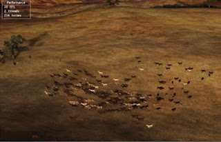 Por exemplo, nesta demonstração que coloca cavalos a passear pela paisagem, um CPU dual core é capaz de suportar 235 cavalos simultaneamente.
