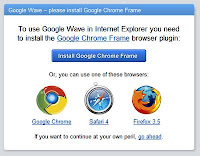 E... qual a melhor forma para "obrigar" os utilizadores do IE a fazerem este upgrade? Nada melhor do que sugerir esse upgrade quando tentarem usar o Google Wave a partir do IE.