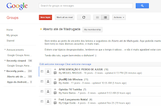 Continua a haver gente que parece ter "medo" de utilizar a nossa mailing list/Google Group - local priveligiado de encontro e discussão (no bom sentido da palavra) da comunidade "Aberto até de Madrugada". Um local onde se podem discutir os últimos assuntos da actualidade e também colocar dúvidas, sugestões, opiniões e tudo o mais.