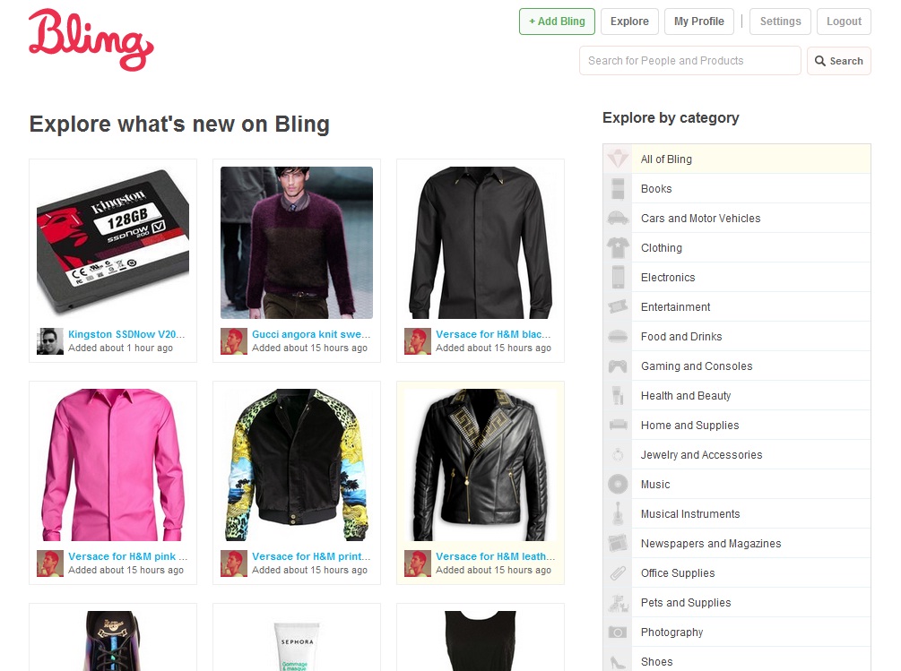 Os fãs das redes sociais que gostem de partilhar as suas aquisições (e listas de desejos) com os seus amigos, têm neste Bling um site especializado para o efeito (e acompanhado por Apps para iPhone, Android e Windows Phone).