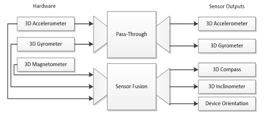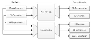 O "problema" é que o resultado directo destes sensores está sujeito a inúmeras interferências e variações, que dificultam o seu uso directo pelos programadores, que são normalmente obrigados a implementar filtros e sistemas de compensação usando os sinais dos diversos tipos de sensor disponíveis. E isso foi algo que a Microsoft resolveu simplificar com o que chama de "Sensor Fusion", um sistema que faz isso automaticamente e dá aos developers os sinais processados de orientação e movimentos, prontos a usar (embora obviamente se continue a ter acesso aos sinais "raw" caso o desejem.)