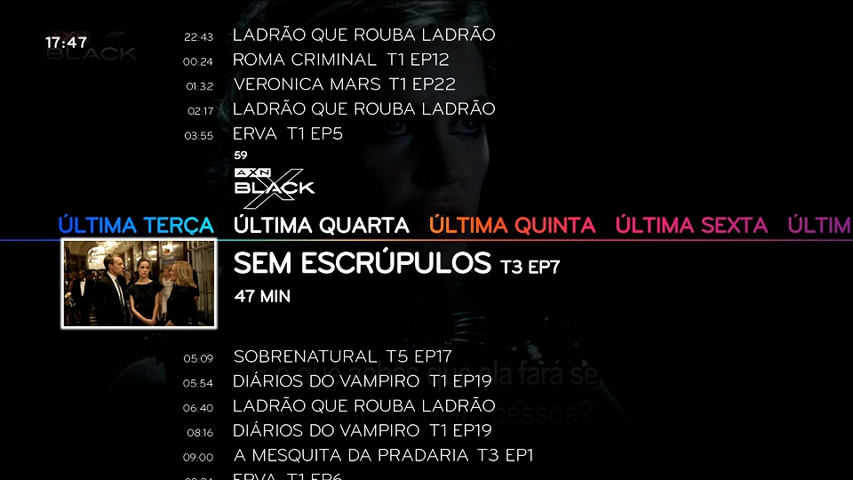 Ou seja... querem ver ou rever aquele filme que deu na passada 4ª feira? É simples... é só navegar no tempo até esse dia, e escolher o canal e programa desejado.