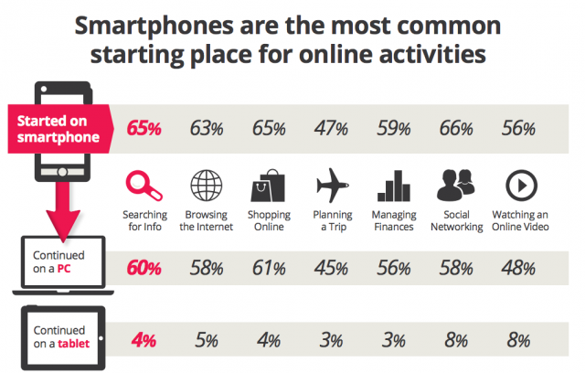 Mas, a coisa complica-se um pouco mais devido à "promiscuidade" que vamos tendo com os vários dispositivos. Por exemplo, é bastante frequente começar-se uma actividade num smartphone (por exemplo, uma pesquisa), que depois será prosseguida num PC, ou num tablet.)