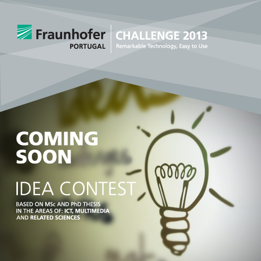 Já está a decorrer a fase de entrega de ideias para o Fraunhofer Portugal Challenge 2013, um concurso de ideias que tem por objectivo promover e recomensar a investigação em áreas de utilidade prática feitas em Portugal.