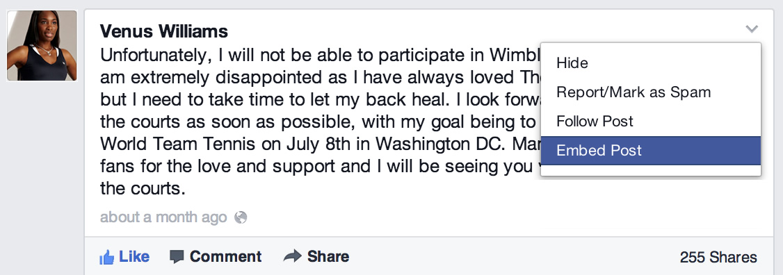 Depois do Twitter e do Instagram, é agora ver do Facebook disponibilizar outra forma para espalhar mais do seu conteúdo pela web, com um novo sistema que permite embutir qualquer post público do Facebook em qualquer página web copiando um pequeno trecho de código HTML e javascript (à semelhança do que se faz para colocar um vídeo do YouTube, por exemplo).