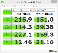 Melhor que aplicações, é testar as velocidades na prática, com cópia e leitura de ficheiros. 149MB/s em escrita e 293 em leitura, são valores próximos da média dos 5 testes efectuados.