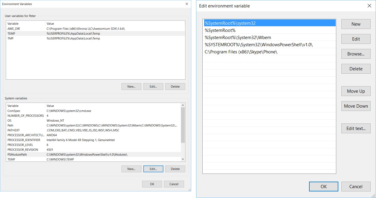 Felizmente, é algo que a Microsoft vai alterar, passando a permitir que esta janela seja redimensionável, de modo a permitir uma fácil visualização do conteúdo das variáveis, e aproveitando para dar um miminho extra aos utilizadores. Em vez de terem que andar a editar uma longa linha com diversas entradas para uma variável do ambiente (como o PATH), esta nova caixa de diálogo apresenta os diferentes elementos da mesma variável de forma individualizada e em linhas distintas, facilitando a sua edição e reordenação.