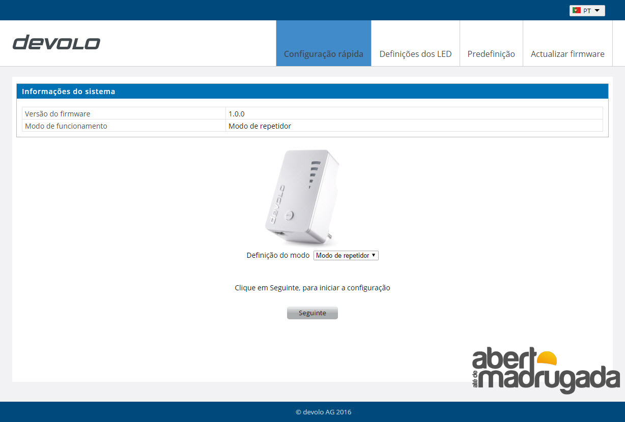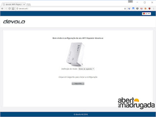 No browser, basta acederem ao endereço http://devolo.wifi . Escolhi modo repetidor para ligar ao meu router.