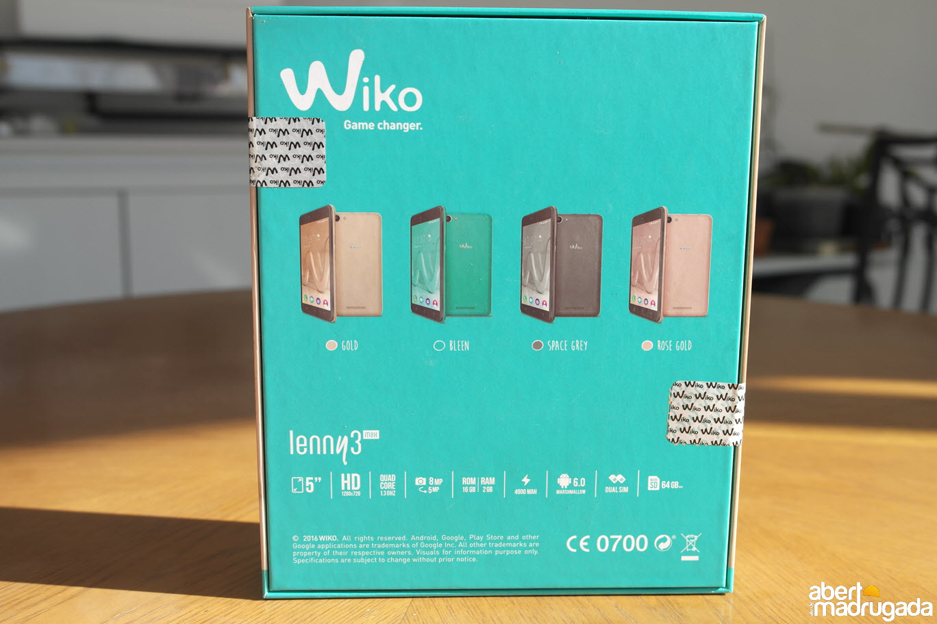 Este modelo apresenta-se com um curioso conjunto de quatro cores: Gold, Green, Space Grey e Rose Gold. A caixa do produto reflecte as cores escolhidas pela Wiko para este seu modelo, as quais podem ser observadas na traseira da caixa. Nesta zona podem ainda encontrar um resumo das especificações, com os principais dados técnicos.