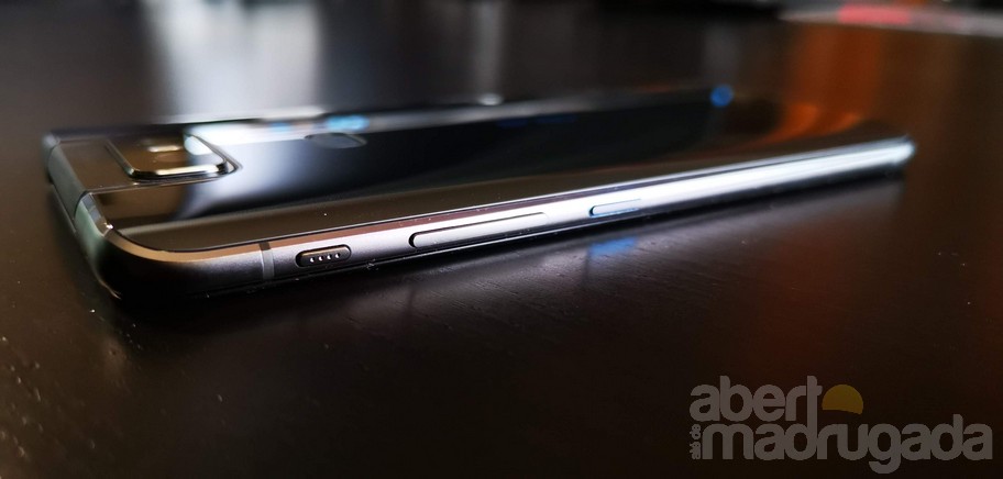 A generosa bateria de 5000mAh é uma das responsáveis pelos 9,1mm de espessura deste ZenFone 6, mas há outro culpado pelo facto de o smartphone se apresentar assim tão "gordinho". O vidro do ecrã frontal, ao invés de apresentar uma curvatura lateral a reduzir o perfil lateral do smartphone, está assente num anel de poli-carbonato, que segundo a marca, visa aumentar a protecção contra as inesperadas quedas.