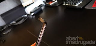 A traseira de vidro assenta na perfeição na área laminada corpo do smartphone mas apenas na zona superior e inferior. Nas laterais há um ligeiro desfasamento entre as duas superfícies, algo que se sente quando se segura o equipamento na mão.