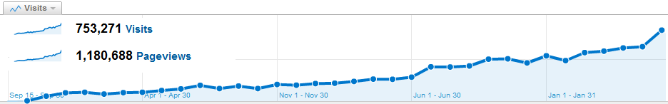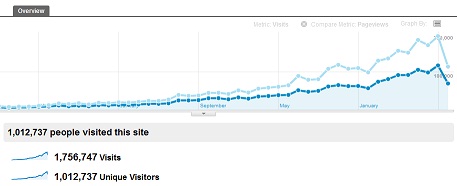 Em Setembro de 2010 tivemos 50 mil visitas... um ano depois foram mais de 116 mil - representando mais 290 mil pageviews! Desde o primeiro post do Aberto até de Madrugada em 2007, são mais de 3 milhões de pageviews, e mais de 1 milhão de unique visitors.