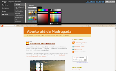 Já vos tinha falado deste novo editor de templates do Blogger, mas a notícia é que agora ele está disponível para todos (anteriormente estava limitado a quem utilizasse o modo "experimental" que disponibiliza as funcionalidades avançadas antes de serem lançadas para o "público".)