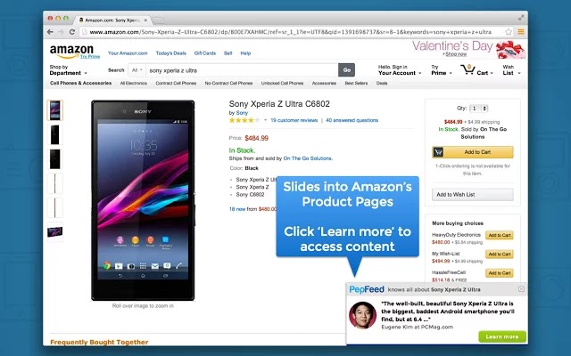Tenho sempre um prazer especial ao falar de projectos feitos em Portugal, e é precisamente esse o caso do PepFeed. O objectivo desta extensão para Chrome é aproximar as lojas online das lojas físicas, onde podemos interagir com outras pessoas, pedir informações e explicações sobre o produto, etc. Nesta versão digital, a visita a uma página de um produto é acompanhada por uma pequena janela flutuante que surge com informações adicionais, comentários, e até vídeos, de modo a que o potencial comprador se sinta mais confiante na decisão que vai fazer.